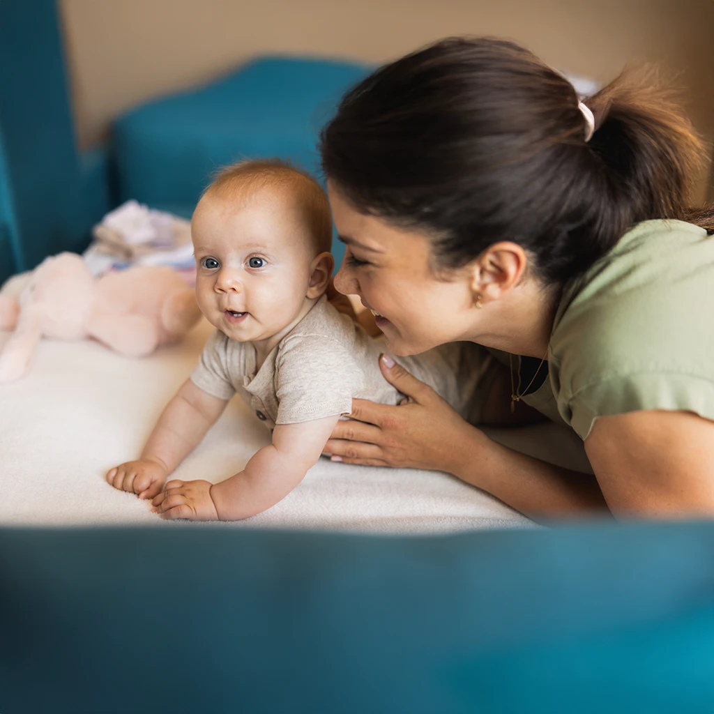 Tummy time encourages your baby to reach for and interact with objects, which helps develop hand-eye coordination. As they learn to push up with their arms or grab for toys, they’re gaining the motor skills needed to reach, grab, and manipulate objects later on. These early movements also build the foundation for fine motor skills, like grasping and manipulating toys, that they’ll use as they get older.