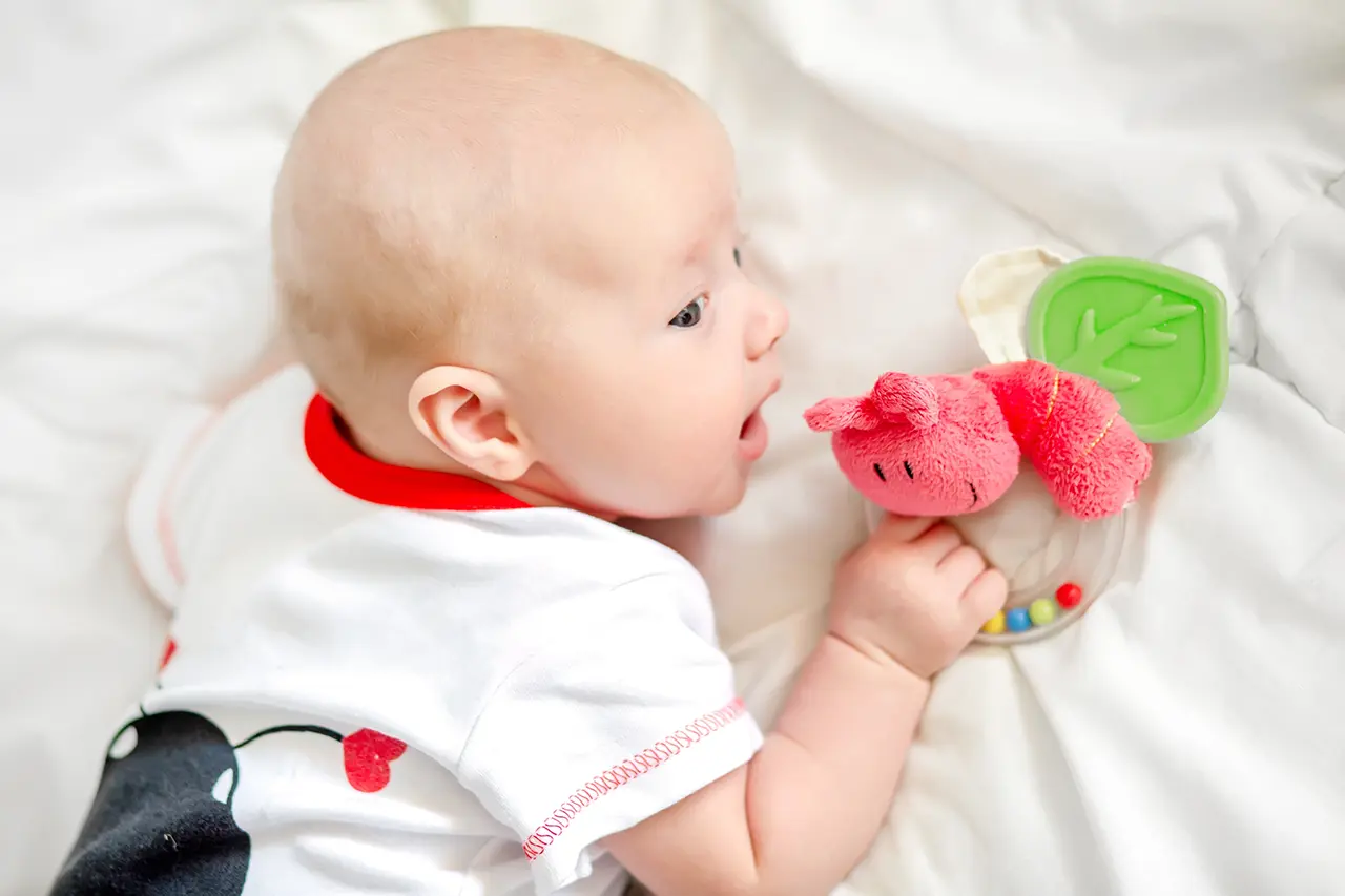 Your baby’s body is becoming more coordinated every day. The left and right sides of their brain are now working together more effectively, helping them control their movements with greater precision. This is why you’ll notice your baby deliberately moving their hands and legs. For example, they might reach for a toy and bring it to their mouth with ease – something that seemed impossible just a few months ago!